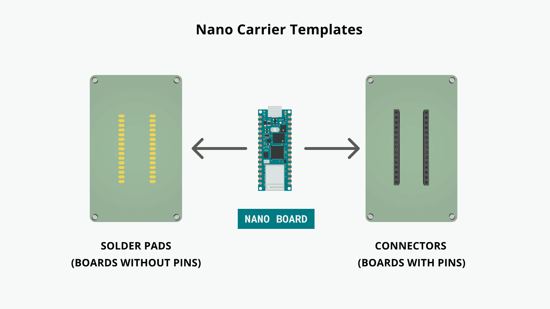 • Solder pads template: an empty carrier template with solder pads. This is useful if you want to create a design where you solder the Nano directly on top of the PCB.